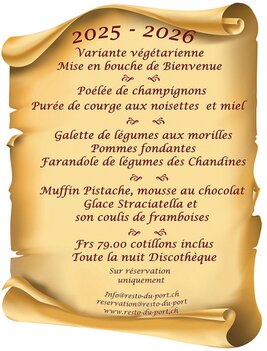 Menus Sylvestre 2025-26 - Restaurant du Port Estavayer-le-Lac